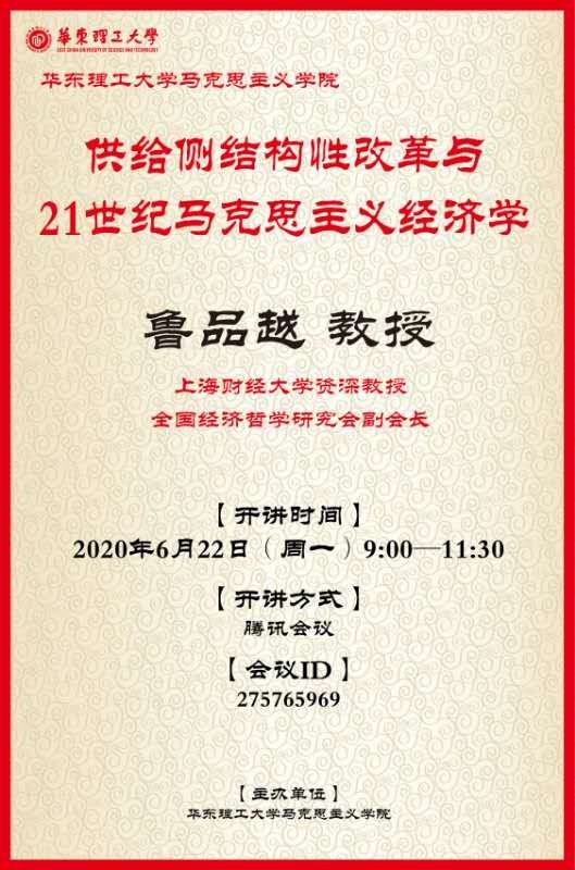 6月22日上午9时,上海财经大学资深教授、全国经济哲学研究会副会长、复旦大学中国研究院特邀研究员鲁品越教授为304永利集团全体师生召开线上视频讲座。会议由304永利集团副院长邱卫东主持,分为主讲人讲授和线上互动交流两个环节。