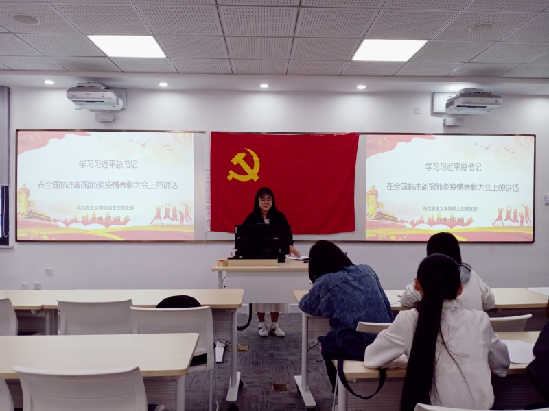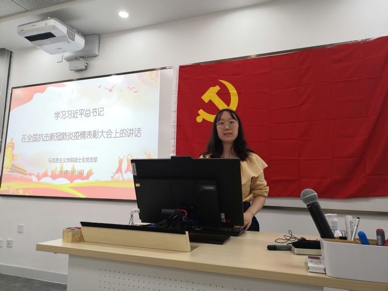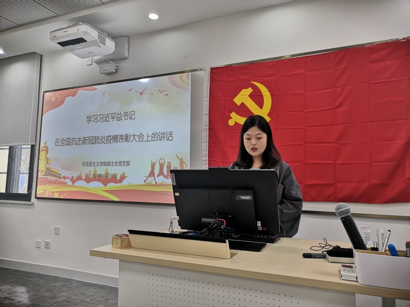 同志们通过联系生活实际及从新闻媒体中了解到的抗击新冠肺炎先进事迹及先进个人,感悟颇深。王天艳同志表示,习近平总书记在讲话中,专门提到了广大90后青年,对自己起了很大的鼓舞作用。王易茗同志表示,习近平总书记的重要讲话,热情讴歌了中国共产党领导和中国特色社会主义制度的显著优势、中国人民和中华民族的伟大力量、中华文明的深厚底蕴、中国负责任大国的自觉担当。侯文君同志表示,参与抗击疫情的党员同志让自己看到了党员的担当和责任感,要向他们看齐。刘文飞同志联系专业知识,表示抗疫精神彰显着人民群众是历史的创造者的深刻真理。其余参会的党员同志们也结合疫情期间自己学习与生活中的感悟做了分享与讨论。
