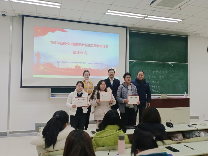 12月16日,习近平新时代中国特色社会主义思想概论课在奉贤校区A202教室举行结业仪式。304永利集团党委书记陈俊傲、副院长徐国民、教师代表李秋祺出席结业仪式。