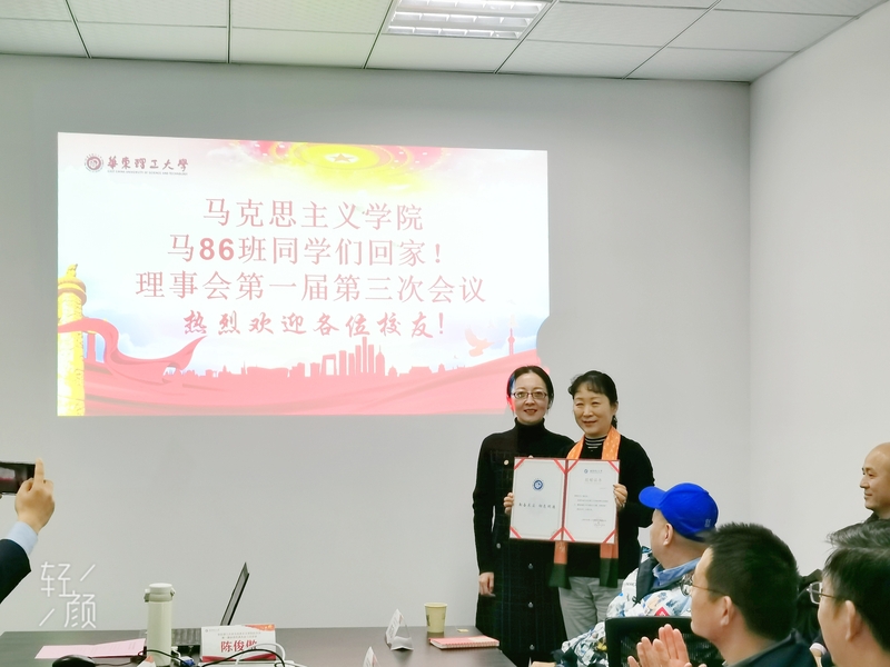 王芝眉代表校友总会和校友发展联络处致辞,并为校友李肖颁发捐赠证书。86级班长陈丰代表校友向理事会提交增补理事建议名单,建议新增7位校友担任本届理事会理事。86级校友联络员陈石松代表校友向大会发言,他简单介绍了毕业以来历次校友会的情况,并引用王蒙《青春万岁》中的诗句表达了对校园岁月的深切怀念。