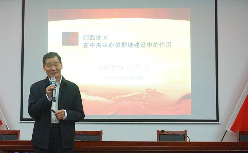 中共龙岩市委党校原常务副校长江维力教授以《闽西地区在中央革命根据地建设中的作用》为题给研修班成员授课。江维力介绍了龙岩市基本市情,并结合闽西革命根据地创建的背景,讲述了党在闽西革命根据地建设实践过程产生的许多治党治军的方法策略,深情地表达了闽西儿女为革命义无反顾的牺牲精神,论述了闽西地区在中央革命根据地建设中的重要作用。江维力勉励大家铭记初心、勇担使命,传承好红色基因,为国家和社会做出更大贡献。报告会过程中,学员们与江维力进行了热烈地互动交流与学术研讨。