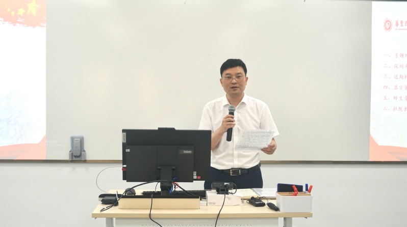 第一议程,全体教师进行教育部师德师风十项准则专题理论学习。陈俊傲宣读了教育部师德师风十项准则内容,对每项准则进行举例解读,并代表学院将教育部师德师风十项准则颁布给学院各个支部、教研部和研究所。随后,陈俊傲向与会人员介绍了赴深圳考察决算通报,并对后期赴遵义考察的相关工作进行简单介绍和部署。陈俊傲与刘海宾就学院常态化疫情防控与网络阵地管理做了布置。