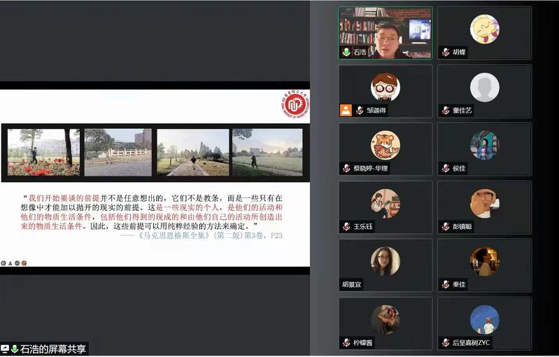 为进一步提升学生的理论素养,增强学生对马克思主义经典著作的理解,304永利集团团委、研究生会联合习研会组织开展了“云端品读 书香战疫”经典著作读书会活动。4月1日下午,第二期读书会如约而至,学院2021级博士研究生石浩带领大家学习了《德意志意识形态》,学院副院长汪斌锋受邀为学生答疑解惑。读书会由学院研究生会文艺部张颖主持,学院党委副书记杨倩、团委书记胡博成和硕博学生50余人参加。