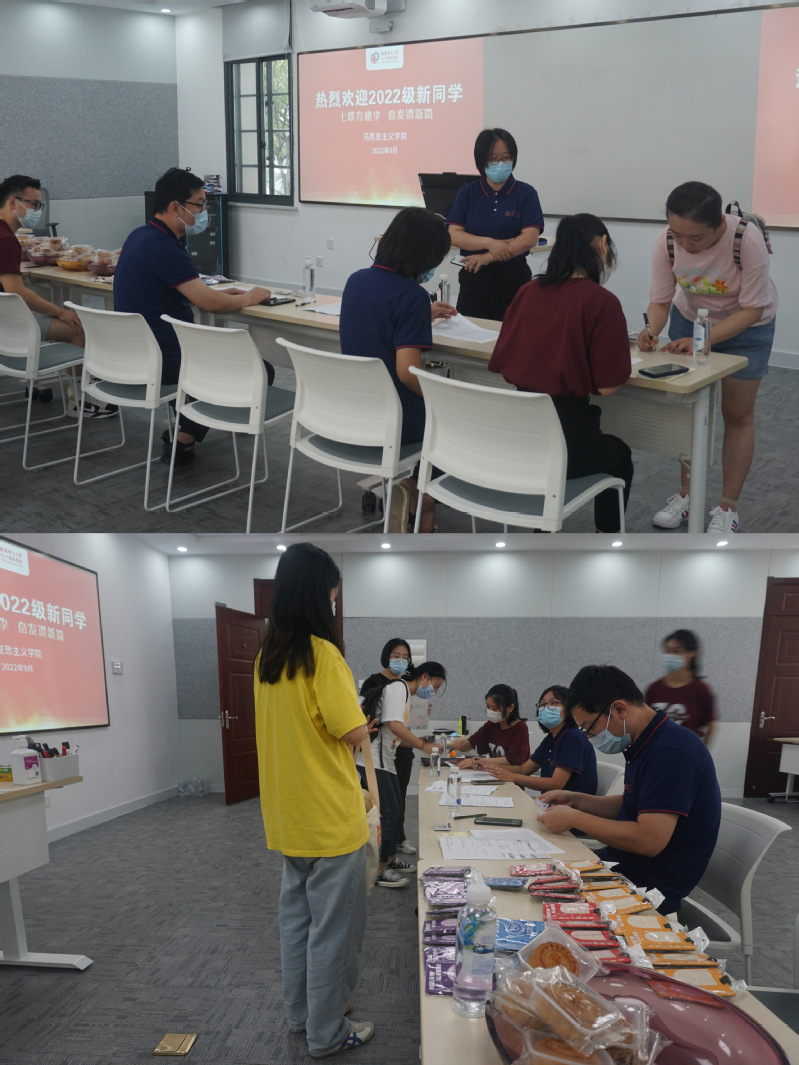 为了帮助新生尽快融入学院大家庭,增强新生的归属感,让新生感受到马院大家庭的温暖,学院精心布置了迎新现场,准备了包括校名帆布袋、卡套和月饼在内的新生礼包以及创意十足的拍照手持牌。从核验相关资料、发放校园卡和新生礼包,再到答疑解惑,学院师生热情、周到、细致的服务获得了新生的一致好评。