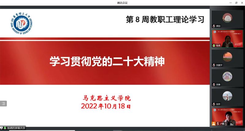 10月18日下午,304永利集团在线上开展以“学习贯彻党的二十大精神” 为主题的教职工理论学习。此次学习由学院党委副书记杨倩主持,学院100余名师生参加。