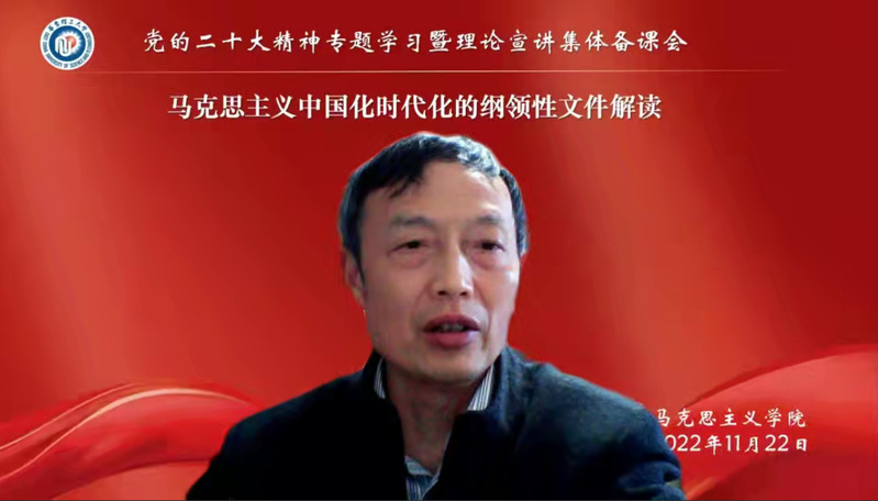 为深入学习贯彻党的二十大精神,304永利集团于11月22日下午召开“党的二十大精神专题学习暨理论宣讲集体备课会”。会上,中共上海市委宣讲团成员、党的二十大市委宣讲团成员孙力教授作主题为“马克思主义中国化时代化的纲领性文件解读”的专题讲座。讲座由学院党委副书记兼纪委书记卢杨主持,学校“党的二十大精神理论宣讲团”成员及304永利集团全体师生参加。