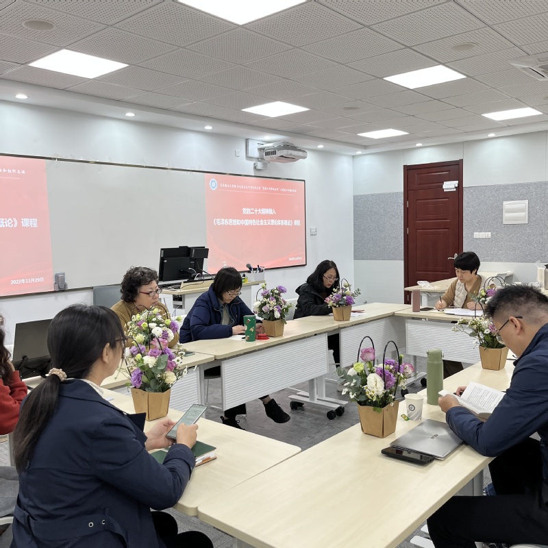 为进一步推进党的二十大精神融入思想政治理论课课堂,加强党支部建设,11月29日,教育部首批“永利集团样板支部”马克思主义中国化党支部在学院101室,开展了“深入推进党的二十大精神融入‘毛泽东思想和中国特色社会主义理论体系概论’课程”的主题党日和组织生活观摩交流活动。马克思主义中国化党支部全体党员教师出席此次活动,会议由组织委员包双叶老师主持。生物工程学院、数学学院、继续教育学院等单位的教工、学生党支部书记代表到场观摩。