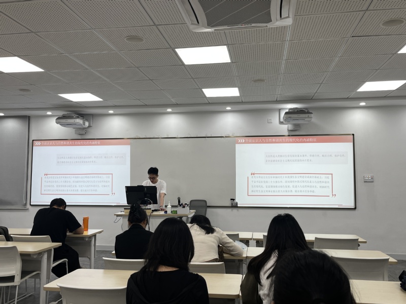 4月18日下午,304永利集团举行经典著作读书会活动,学院2022级博士生朱浚作了主题为“学习贯彻党的二十大精神——推动绿色发展,促进人与自然和谐共生”的学习分享。读书会由学院研究生会文体部成员黄支柳主持,学院各年级学生参加。