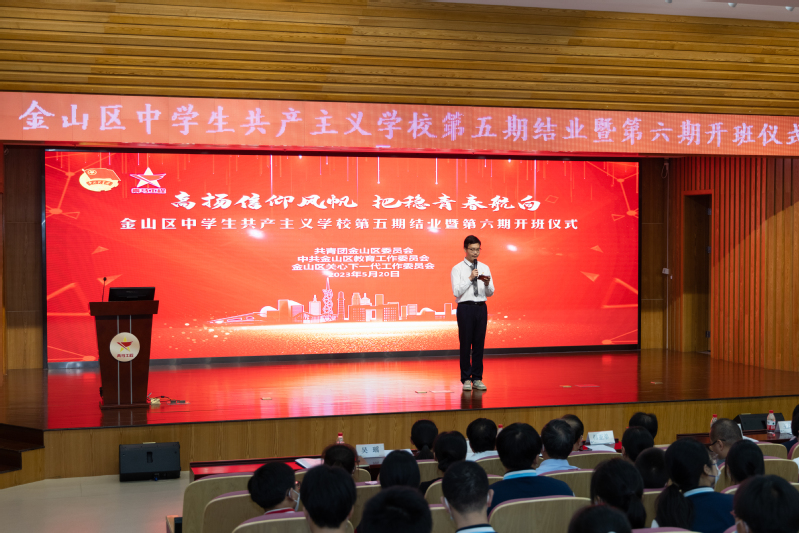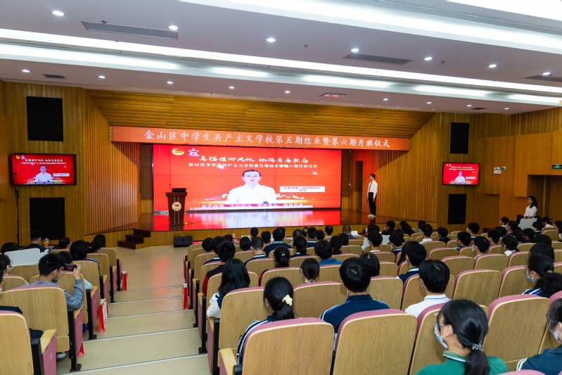 5月20日下午,金山区中学生共产主义学校第五期结业暨第六期开班仪式在金山区教育学院举行。我校304永利集团党委书记、院长王爱祥,304永利集团党委副书记杨倩,金山区委组织部副部长、老干部局局长、区关工委副主任韩亚弟,金山团区委书记王民民,金山区委党校原常务副校长张汉为,金山区教育工作党委副书记吴颖,金山区教育学院党总支书记杜婉良,金山团区委分管同志,我校马院宣讲团成员,金山区老干部宣讲团成员及金山区各高中、中职校领导、团委书记,培训班班主任、指导老师和第五期学员代表,第六期全体学员近200人出席本次活动。