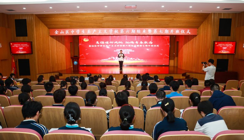 5月12日下午,金山区中学生共产主义学校第六期结业暨第七期开班仪式在金山区教育学院举行。我校304永利集团党委副书记杨倩,金山区委组织部副部长、老干部局局长、区关工委副主任韩亚弟,金山区教育工作党委副书记吴颖,金山区教育学院党总支书记方德平,金山团区委副书记张鹏,金山区委党校原常务副校长张汉为,金山团区委分管同志,我校马院团委书记王曦晨、宣讲团成员,金山区各高中、中职校领导、团委书记,培训班班主任、指导老师,第六期学员代表以及第七期全体学员近100人参加本次活动。