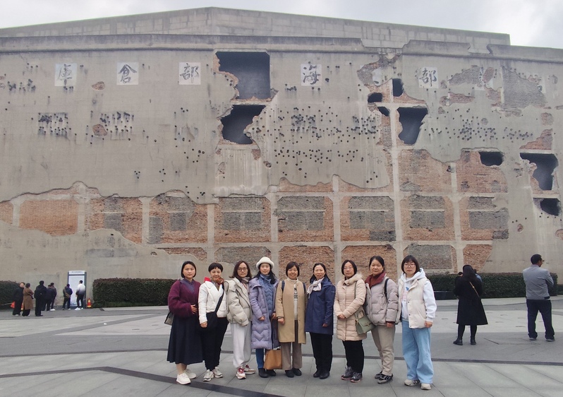 游船结束,老师们又一起参观四行仓库抗战纪念馆。这座见证了淞沪会战悲壮历史的建筑,如今已成为爱国主义教育基地。大家在讲解员的带领下一起回顾了那段悲壮的历史,缅怀先烈,感受那段烽火连天的岁月,更加珍惜今天来之不易的幸福生活。