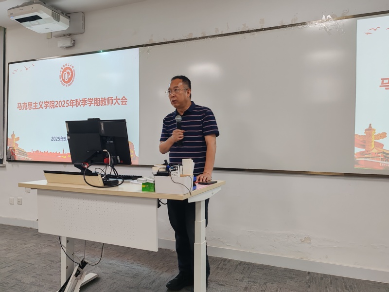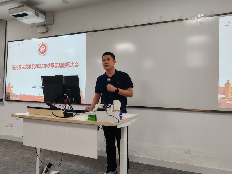 邱卫东通报了暑假期间学院开展的各项工作,希望学院全体老师在人工智能的大背景下,要进一步加强思政课建设,继续做好培根铸魂、立德树人工作;要做好学院研究生和青年教师的培养,提升青年马克思主义人才的质量;在师德师风方面要坚守意识形态安全,在学术规范、科研经费和师生交往等方面筑牢底线,为学校的高质量发展贡献力量。