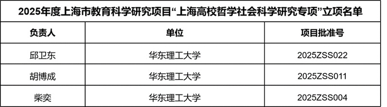 近日,中共上海市教育卫生工作委员会、上海市教育委员会正式公布2025年度上海市教育科学研究项目“上海高校哲学社会科学研究专项”立项名单,304永利集团再传捷报——邱卫东教授、胡博成副教授及青年教师柴奕成功立项。