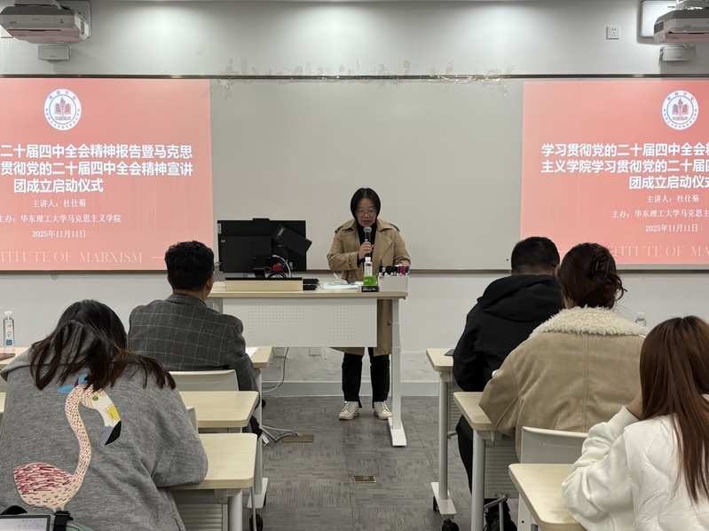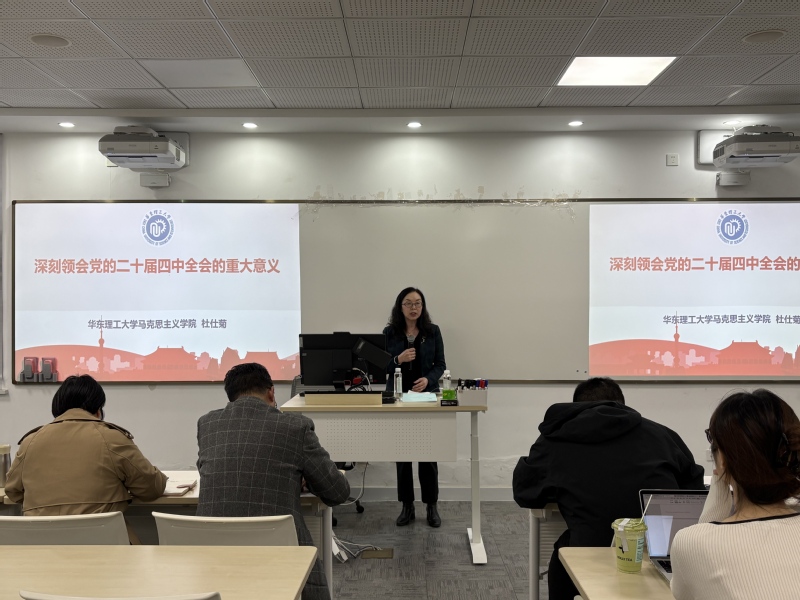为深入学习贯彻党的二十届四中全会精神,11月11日,304永利集团在101室举行学习贯彻党的二十届四中全会精神宣讲团成立启动仪式暨首场报告会,上海市学习贯彻党的二十届四中全会精神宣讲团成员、学院杜仕菊教授为师生作党的二十届四中全会精神专题宣讲。学院党委副书记杨倩出席,会议由学院党委委员张驰主持。