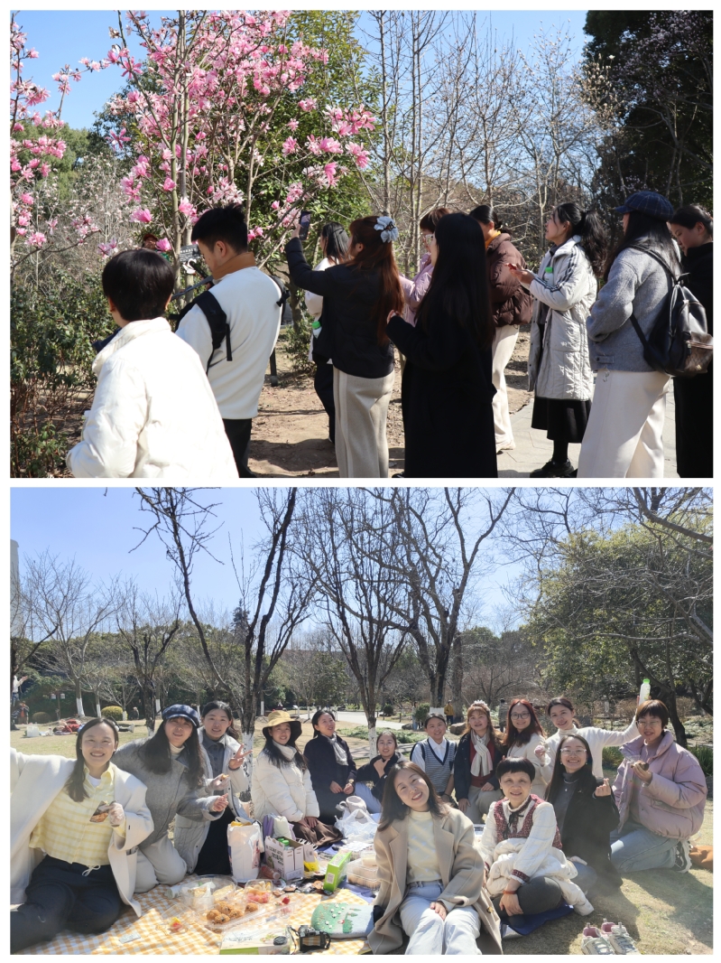 活动当天,春意盎然、繁花似锦。女教职工们漫步于上海植物园的林荫步道与花海之间,欣赏春日盛景,驻足赏花、合影留念,用镜头定格美好瞬间。大家围坐一起开展温馨野餐,在轻松惬意的氛围中畅谈工作生活。整场活动欢声笑语不断,大家在自然春光里舒缓身心、增进情谊。